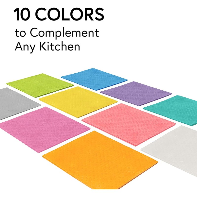 Swedish Wholesale Dishcloths, Cellulose Sponge Cloths – Bulk 10 Pack of Eco-Friendly, No Odor, Reusable Cleaning Cloths for Kitchen – Absorbent Dish Cloth Hand Towel – Assorted
