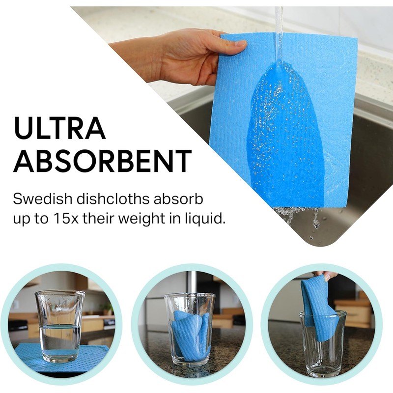 - Super Absorbent: Perfect for wiping down any surface, our Swedish dishcloths for kitchen and bathroom cleaning pick up spills and splashes like magic