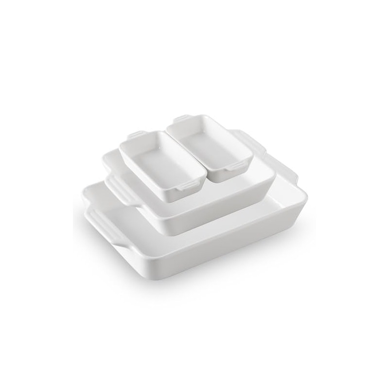 Sweejar Ceramic Bakeware Set of 4, Casserole Dishes for Oven, Rectangular Baking Dish with Handles, Lasagna Pans Deep for Cooking, Gratin, Roasting, Banquet and Daily Use (White)