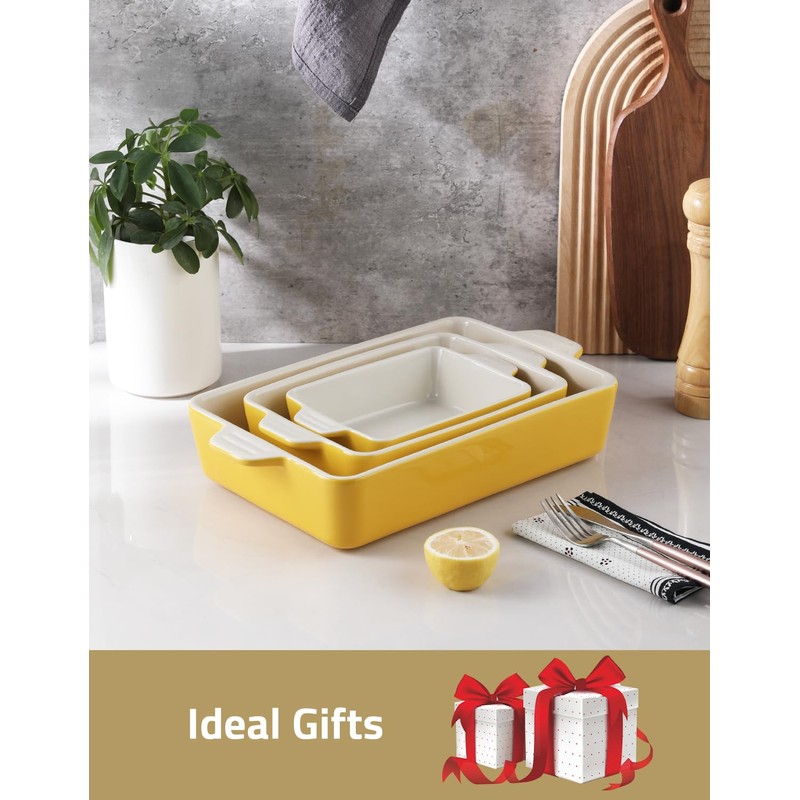 Sweejar Ceramic Bakeware Set, Rectangular Baking Dish for Oven Lasagna Pans for Cooking, Kitchen, Cake Dinner, Banquet and Daily Use, 11.8 x 7.8 x 2.76 Inches of Casserole Dishes (Yellow)