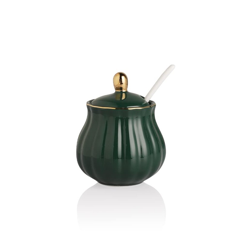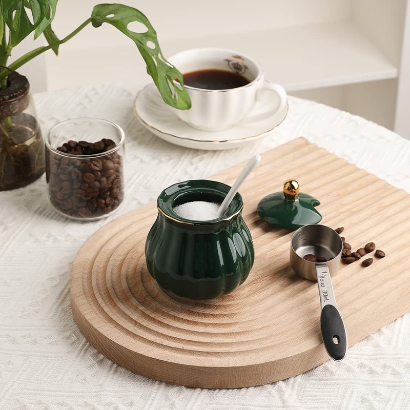 Sweejar Royal Ceramic Sugar Bowl, 8 Ounce Sugar Container with Spoon and Lid, Porcelain Salt Bowl Salt Container, Sugar Holder for Coffee Bar, Home and Kitchen(Jade)