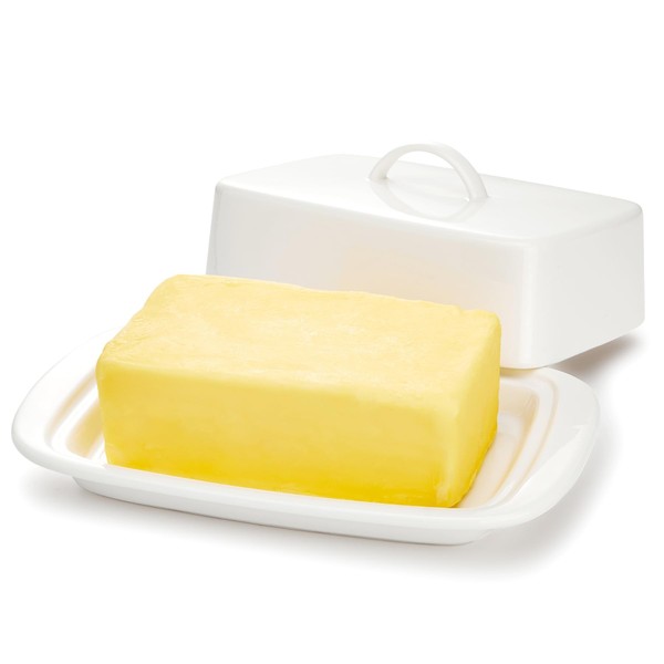 Sweese Large Butter Dish with Lid for Countertop, Porcelain 8oz Butter Keeper with Handle Cover Design, 7.7 Inch Butter Container Perfect for East/West Coast Butter, White