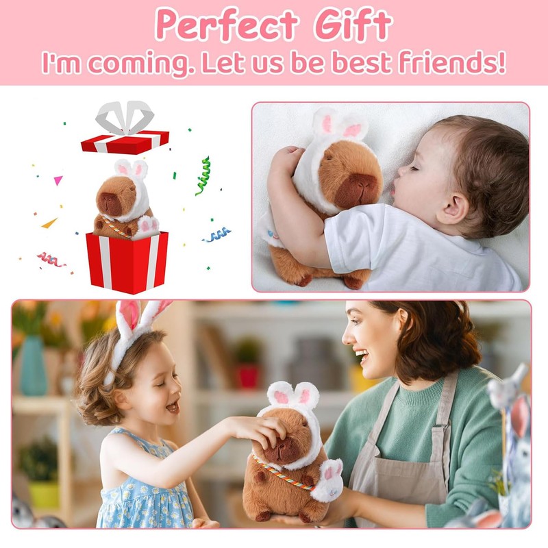 - 【Creative Design】Stuffed capybara comes with a detachable bunny ear hat and a bunny shoulder bag that squeaks when pressed.This little guy will be very adorable. Easter Bunny Capybara Stuffed Toyhas a unique and eye-catching design, and the capybara plush animal makes it a perfect creative gift for anyone who loves capybaras