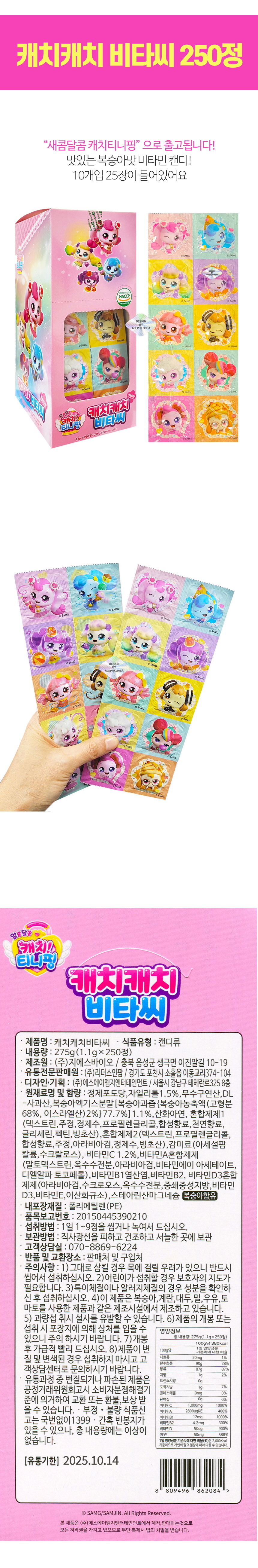 Sweet and Sour Catch Tiniping Catch Catch Vita C Vitamin 250 tablets / 새콤달콤 캐치티니핑 캐치캐치 비타씨 비타민 250정