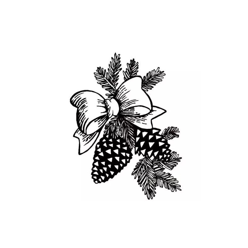 Sweet Grass Stamps PINE CONES & BOW, Christmas unmounted rubber stamp, winter, festive holiday #7