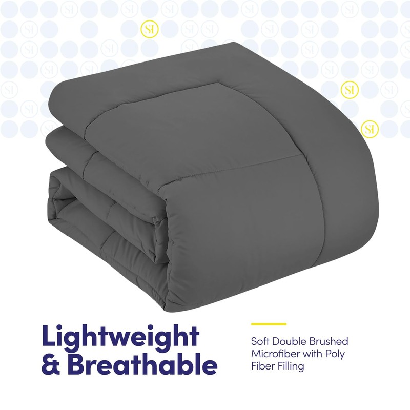 Sweet Home Collection 5 Piece Comforter Set Bag Solid Color All Season Soft Down Alternative Blanket & Luxurious Microfiber Bed Sheets, Gray, Twin (Pack of 4)