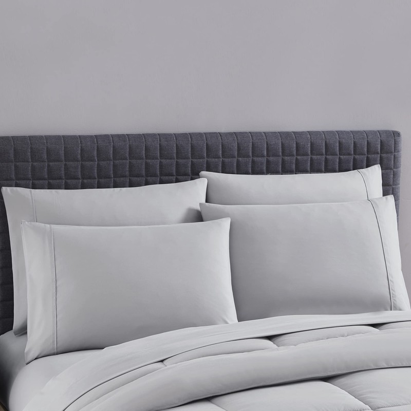 Sweet Home Collection 7 Piece Comforter Set Bag Solid Color All Season Soft Down Alternative Blanket & Luxurious Microfiber Bed Sheets, Silver, King (Pack of 3)