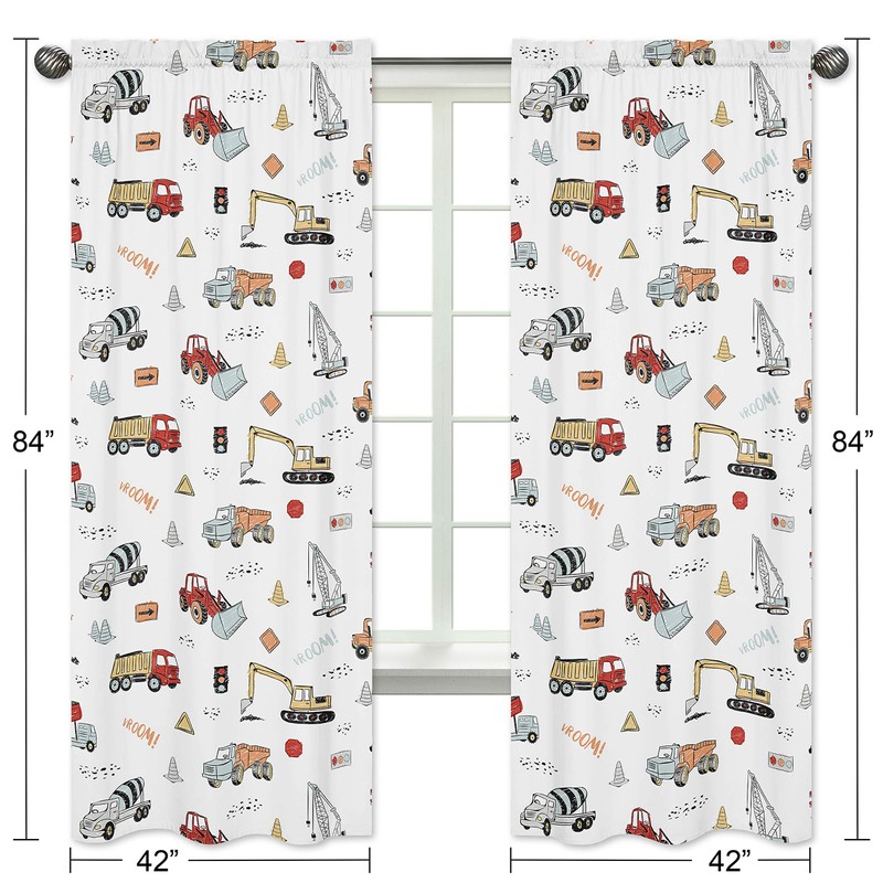 Sweet Jojo Designs Construction Truck Window Treatment Panels Curtains - Set of 2 - Grey Yellow Orange Red and Blue Transportation