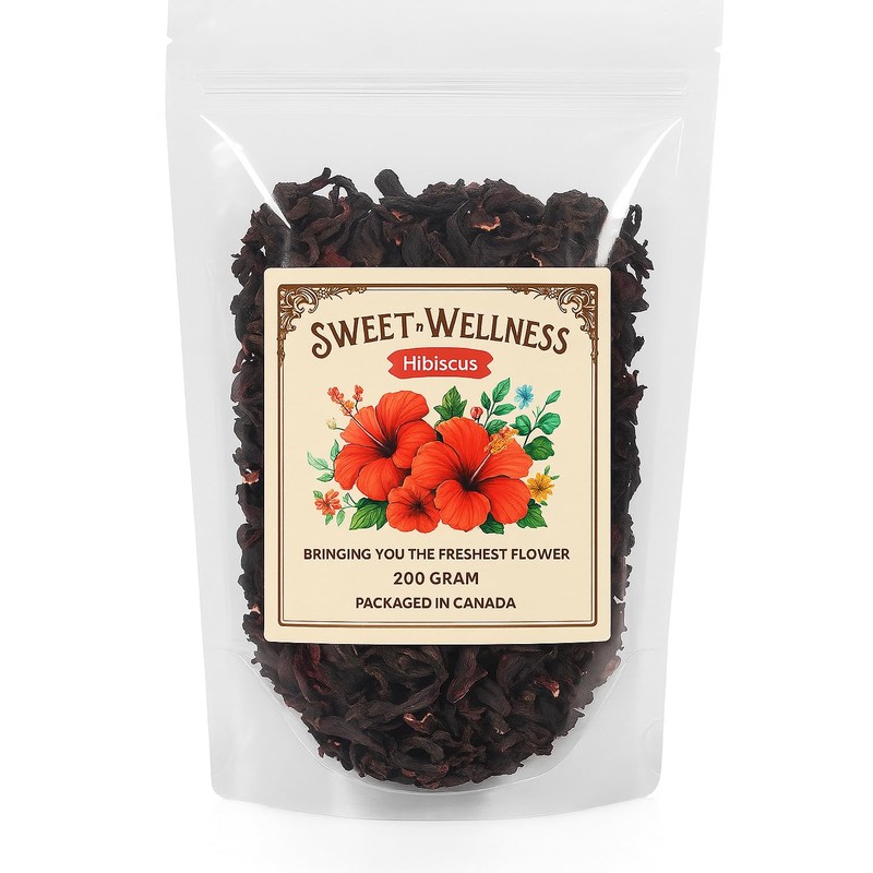 Sweet N Wellness Organic Dried Hibiscus Flowers (7.0oz/200g) – 100% Natural & Premium Quality | Herbal Tea, Cooking, Baking & Skincare | Rich in Antioxidants, Caffeine-Free, Non-GMO, Hand-Picked, No Additives, Packed in Canada & 100+ servings, Hibiscus s