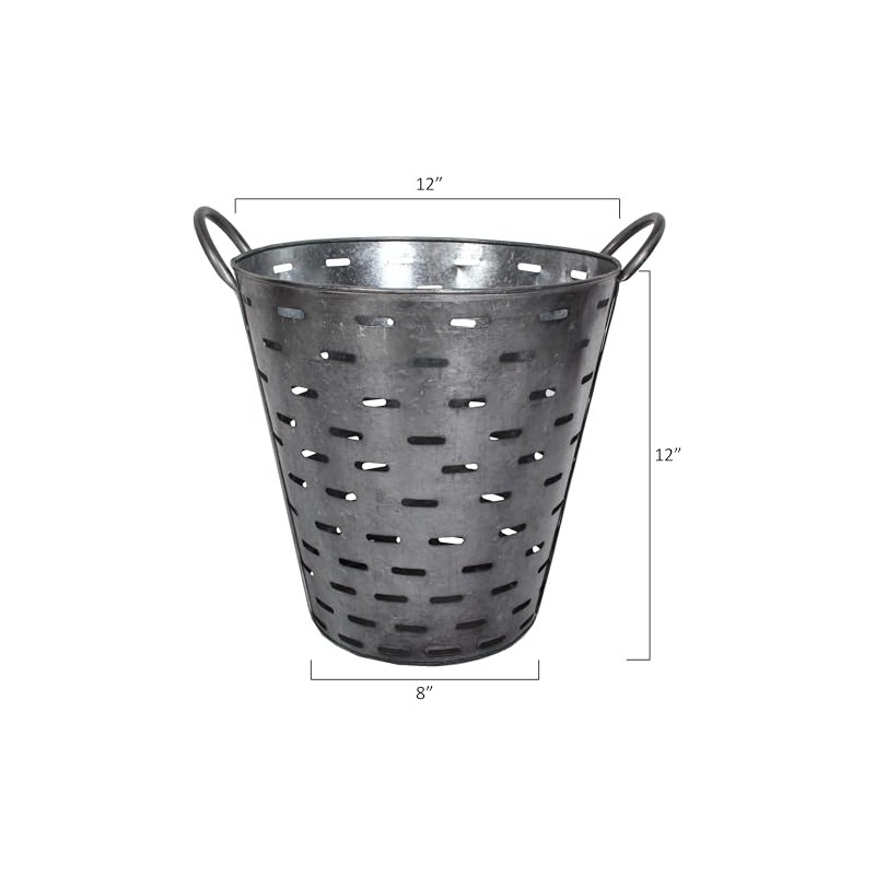 Sweet Summer Living Outdoor/Indoor Set of 4 Olive Buckets, Planters 12" W x 12" H Metal, Galvanized, Tin Platinum Finish