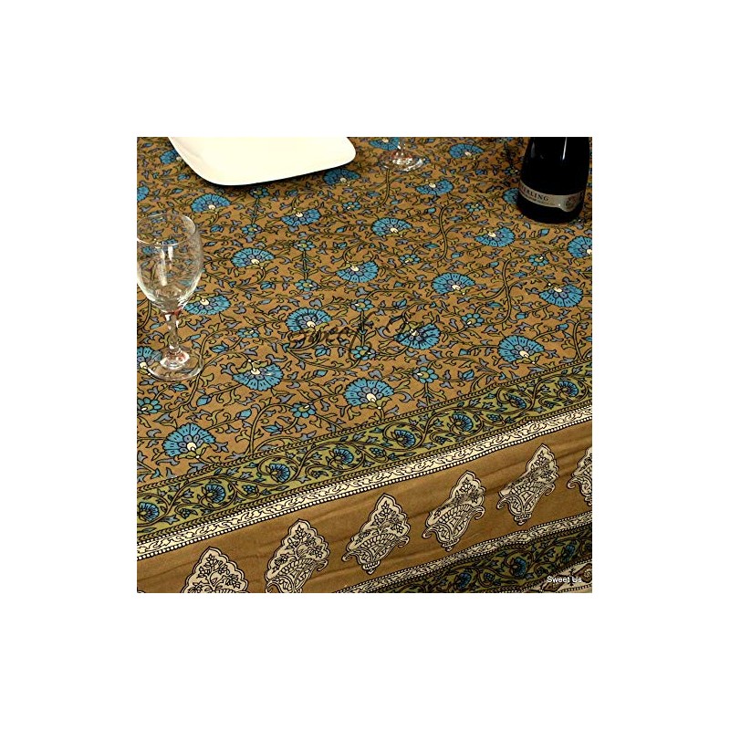 Sweet Us Cotton Floral Tablecloth for Rectangle Tables Turquoise Beige Tan Brown Olive Green Fabric Kitchen, Dining Linen (Beige, 70 x 104 inches)