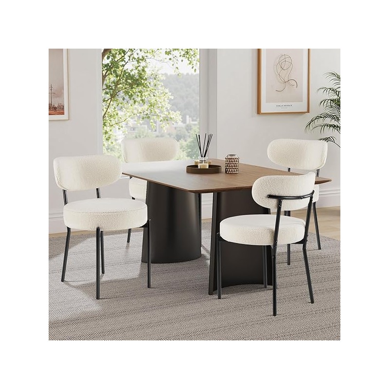 Sweetcrispy Dining Chairs Set of 4, Boucle Upholstered Modern Mid Century Round Kitchen Chairs with Curved Backrest & Metal Legs for Vanity, Living Room - Beige