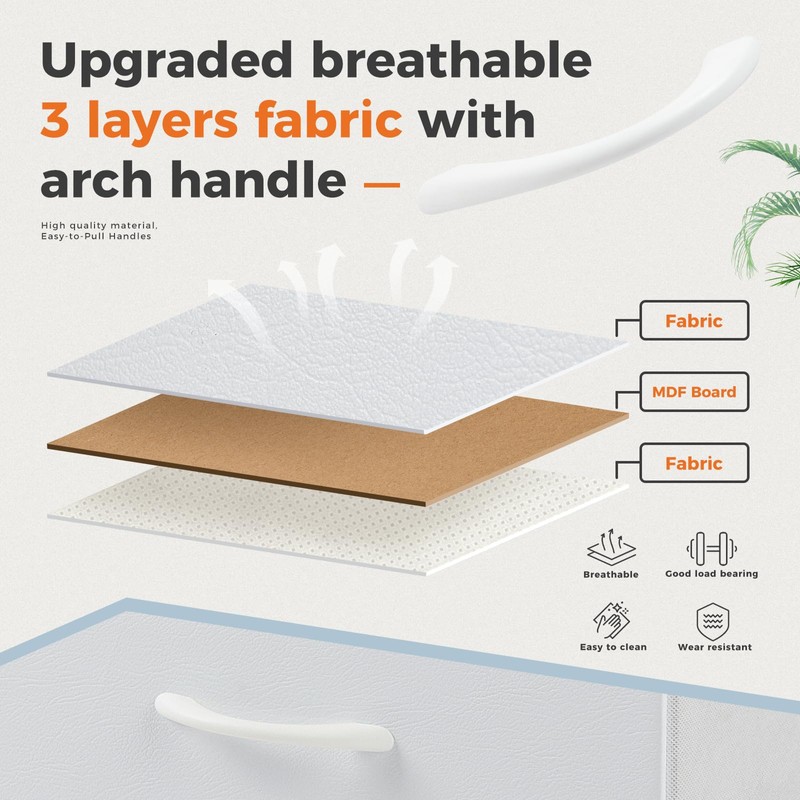 - 【Quality Construction】This fabric dresser combines water-resistant MDF board with a durable steel frame, make it sturdy under load 44 lb. Anti-tipping accessories are also equipped to prevent accidents.