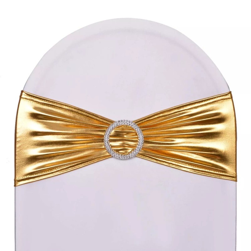 SweetEasy 10pcs Metallic Golden Spandex Chair Sash, Stretchable Elastic Bands Durable,S...