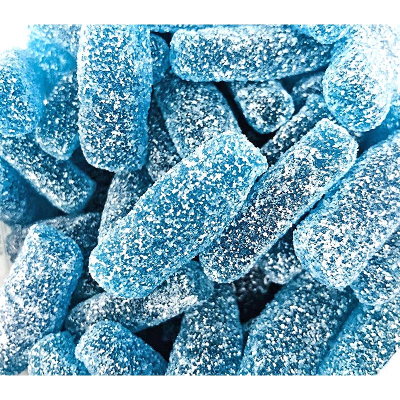 - These bite size blue raspberry gummy sugar coated soda bottles are sure to be a fan favorite!