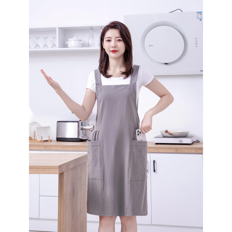 Sweetheart Retro Kitchen Aprons for Women with Pocket Cotton Princess Skirt Cooking Cross Back Work Apron for Chef Gardening(Gray)