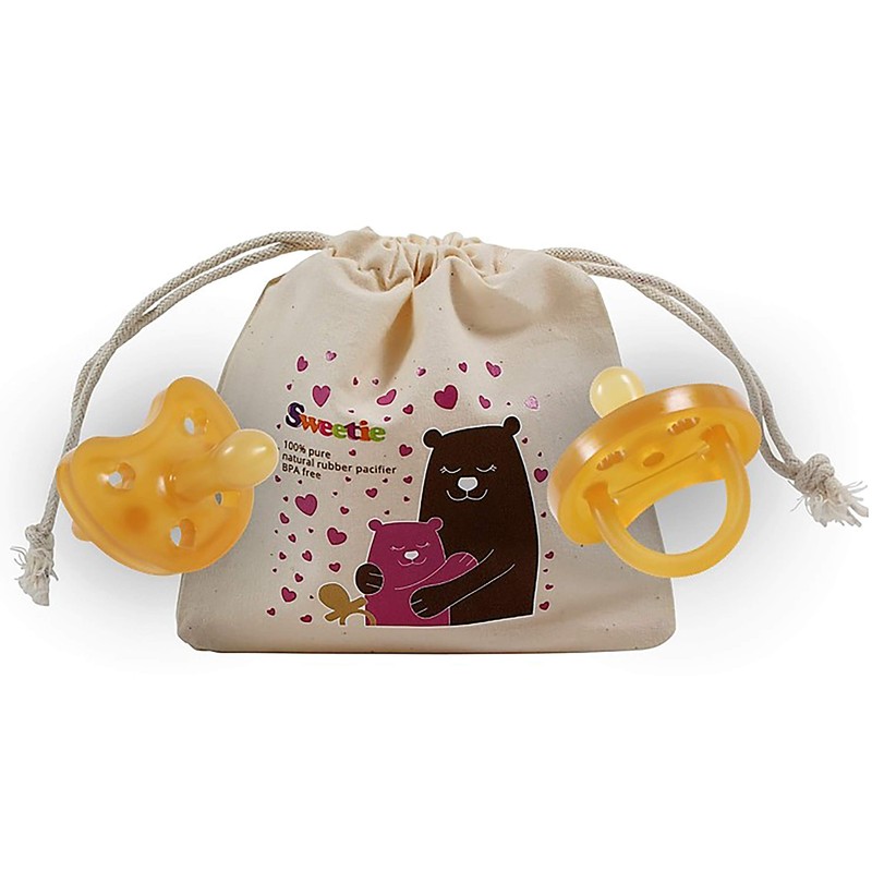 Sweetie 100% pure natural rubber dummy soft and natural, symmetrical, 3 sizes. Made from 100% natural rubber, from the tree Hevea tree, natural rubber is softer than silicone and leaves no marks on baby's face. UNIQUE HYGIENIC & STRONG - Made from a cast iron with no joints or cracks where dirt and bacteria can accumulate. No BPA, nitrosamine, PVC, phthalates, chemical plasticisers or artificial dyes. Complies with standard EN1400 nipple length 2.7 cm nipple width 1.5 cm