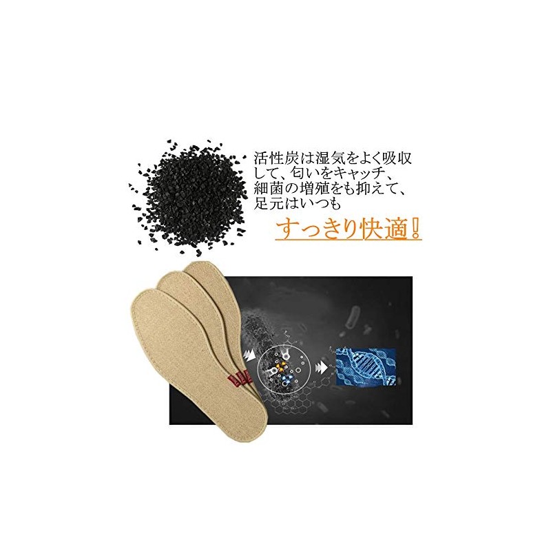 Sweetimes No.176 (24) Linen Charcoal Deodorizing Insoles, Washable, Shoe Insoles, Set of 5 Pairs