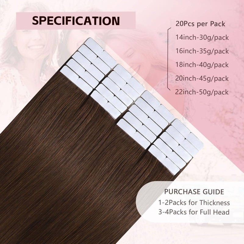 - 【Upgraded Pro Quality Real Human Hair】Sweetmet invisible tape in hair extensions real human hair craft from new upgraded luxury remy human hair. This pro quality hair has greater comfort and longevit, no knots, no dryness, smooth and soft,At least 5 months lifespan with good care.