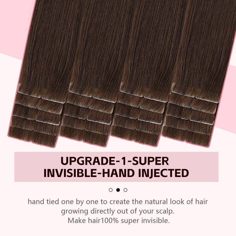 - 【Super Invisible】The 3.0 upgraded version Injection invisible tape in hair extensions are hand tied on to the tape, one by one to create the natural look of hair growing directly out of your scalp. Making them 100% invisible, It is more super invisible than the 1.0 and 2.0 version classic tape hair.