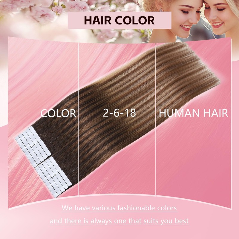 Sweetmet 3rd-Generation Invisible Tape in Hair Extensions Human Hair #2/6/18 Dark Brown to Dirty Blonde 20pcs 40g 18inch Insert Hand-Tied Remy Invisi Edge Tape ins Extensions(#2/6/18-18inch)