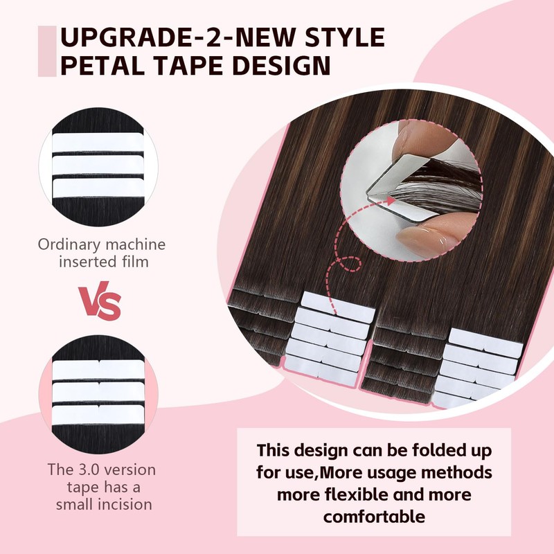 - 【Super Invisible】The 3.0 upgraded version Injection invisible tape in hair extensions are hand tied on to the tape, one by one to create the natural look of hair growing directly out of your scalp. Making them 100% invisible, It is more super invisible than the 1.0 and 2.0 version classic tape hair.