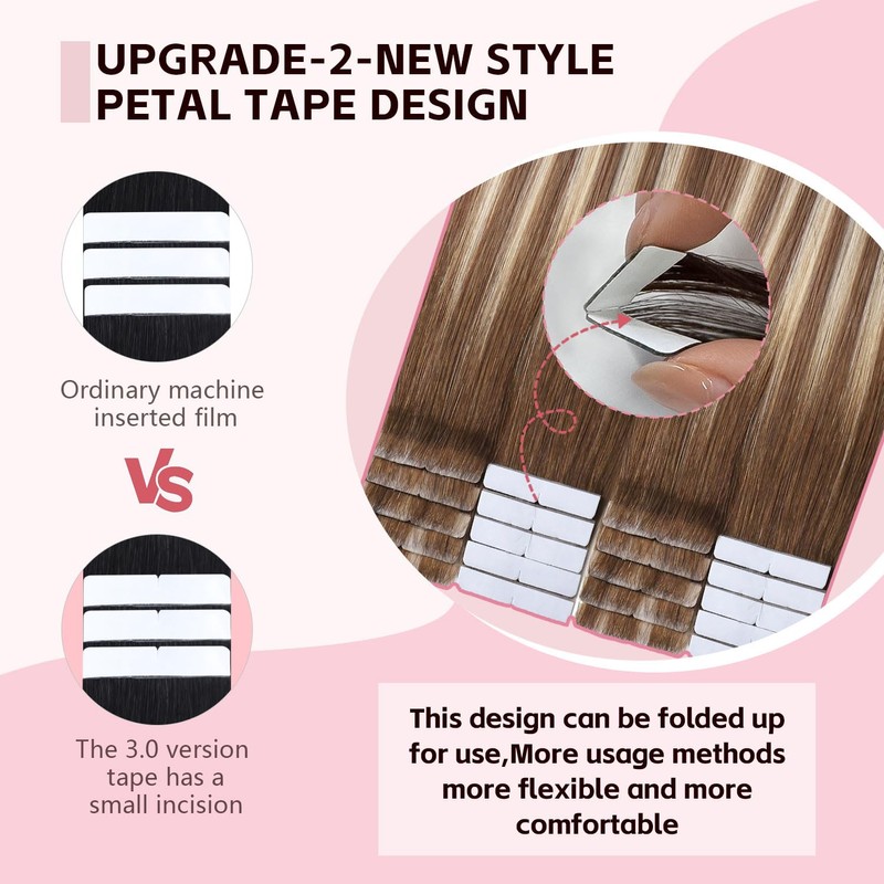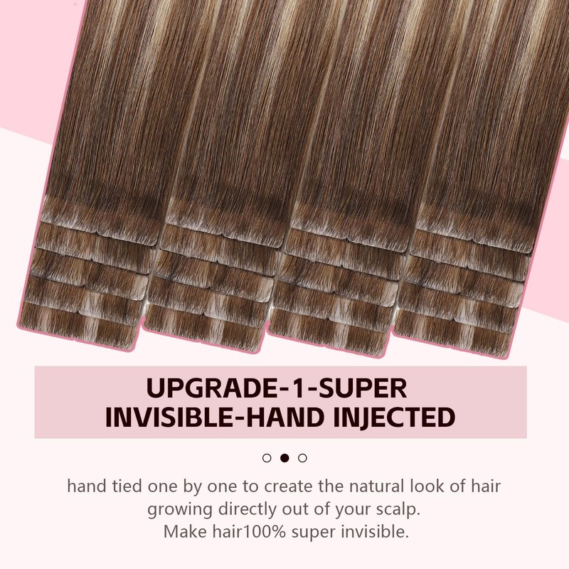 - 【Super Invisible】The 3.0 upgraded version Injection invisible tape in hair extensions are hand tied on to the tape, one by one to create the natural look of hair growing directly out of your scalp. Making them 100% invisible, It is more super invisible than the 1.0 and 2.0 version classic tape hair.