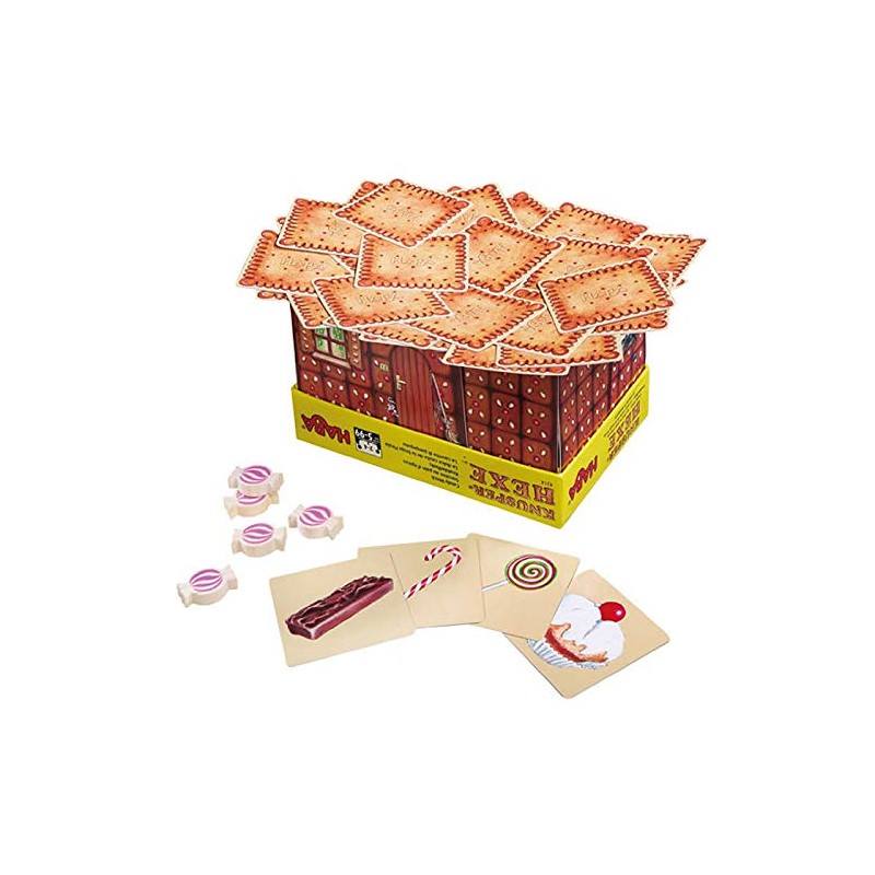 The Witch of the Candy is a game that collects lots of candy pieces and receives a prized candy set from the roof of the 3D candy house made just with a card alone or rearranged in accordance with the pattern. Serve some treats from the famous fairy tales "candy house" roof. But be careful not to wake up with the witch! Choose one treat card overlapping on the roof and pull out one by one, check the sweets on the front side and stack them on your hand. But if you get the same kind of treats that you stacked one circle before, you will have to go back to the roof. However, others will get that card "want that treat" We try to push it into the corner to prevent it from collapsing, but the support of the roof will gradually change with the push of it. In this way, if you continue to play the game and the roof is crushed out without support, the person who collects many candy cards get a reward candy set and end one round. Collecting cards and creating a roof again... and repeatedly get 2 candy links first wins.
