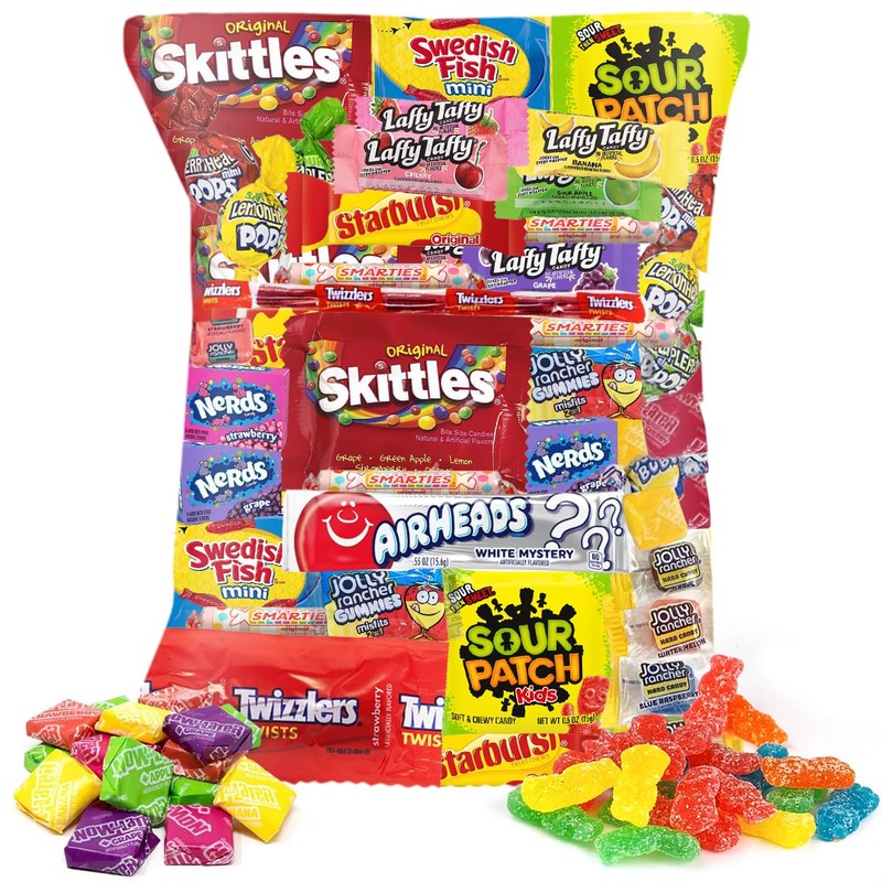 - KID'S FAVORITE SWEETS GIANT BAG - Watch as kids' eyes light up with excitement! Our Kid's Dream mix is a symphony of flavors, featuring chewy Lemonhead fruit mix, Airheads white mystery, Sour Patch Kids, and a delightful selection of C strawberry and grape. This assortment ensures that every bite is a taste of childhood joy, making it the ultimate go-to for satisfying candy cravings