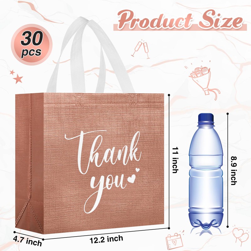 Sweetude 30 Pcs Thank You Gift Bags with Handles Bulk Reusable Goodie Bag Non Woven Foldable Bag for School Graduation Wedding Bridesmaid Gifts(Rose Gold, 11 x 12 x 5 Inch)