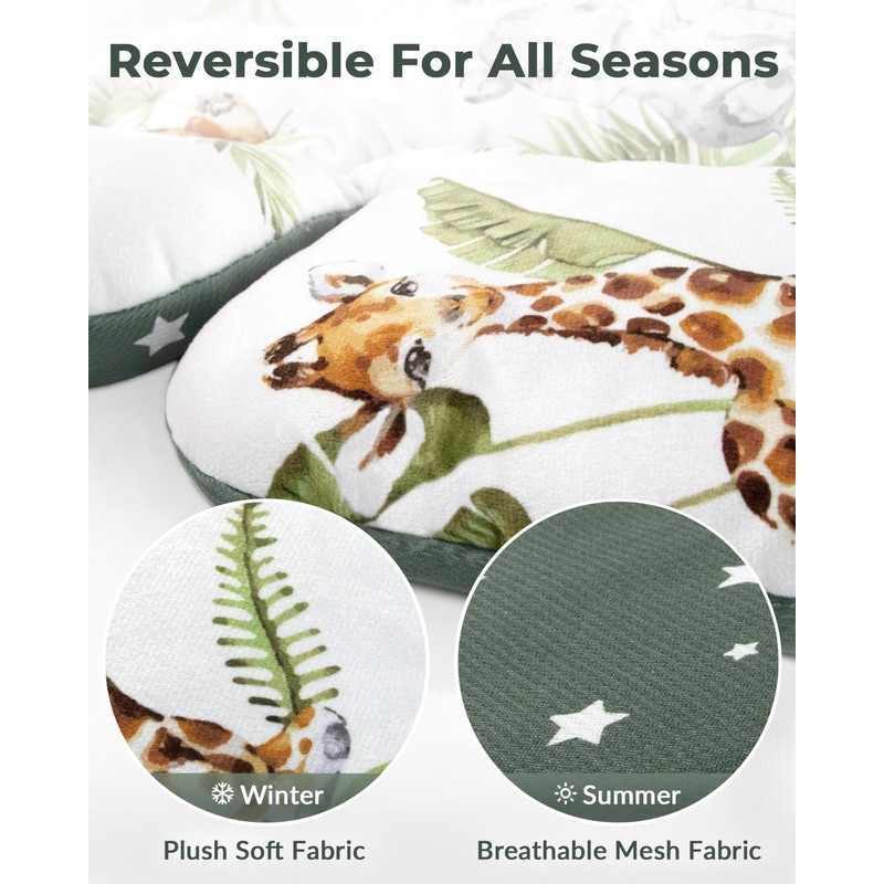 - Reversible Design for 4 Seasons. The front side of the cushion is made of soft plush fabric that keep babies warmer in winter and the back side is made of cool breathable mesh that makes babies feel cooler in summer. Both sides of the infant insert is printed with attractive cute patterns. Choose the pattern you like and leave your little one a more colorful world.