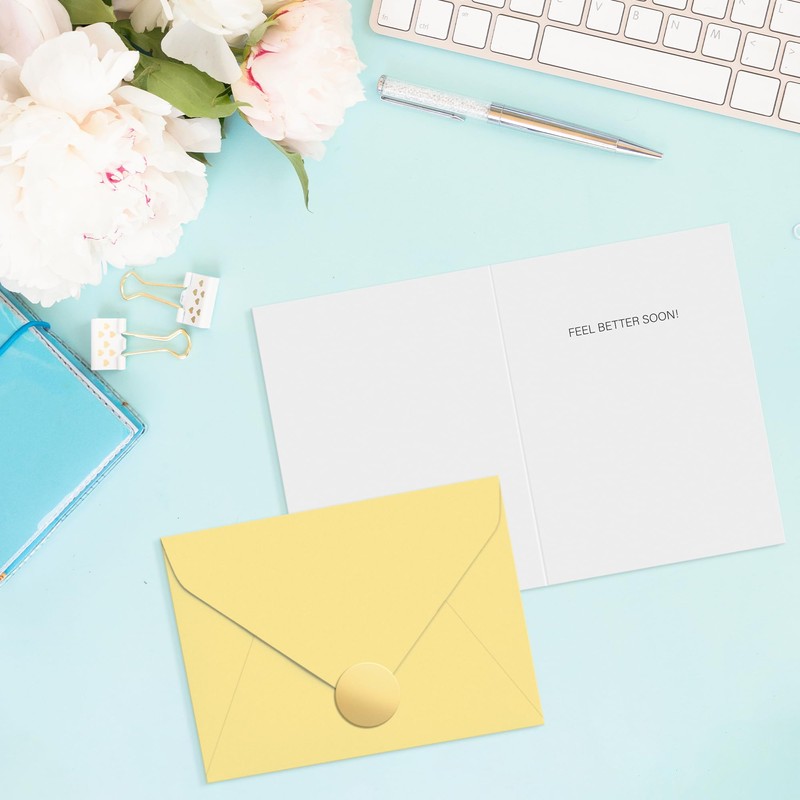 - Send Your Card in Style – Every thoughtful greeting card deserves a finishing flourish. The included 180gsm envelope is thick, opaque, and durable, ensuring your card arrives in pristine condition. The gold foil sealing sticker gives your envelope a touch of shimmer and elegance, perfect for adding a luxurious, heartfelt feel to this greeting card for sickness.