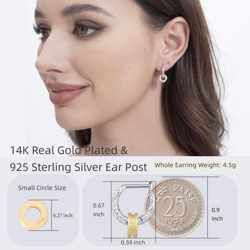 SweYone Two Tone Small Hoop Huggie Earrings, Gold&Sliver Earrings|Sun Hoop Earrings|Star Cross Dangle with CZ|Square Shell Drop Stud Earrings|14K&18K Gold-Plated Earrings Jewelry Women Birthday Gifts,