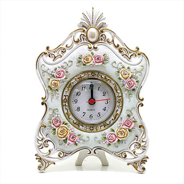 SWHONG Pretty Small Resin Clock Flower Art Table Desktop Alarm Clock Bedside Home Decor