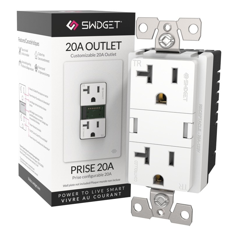 Swidget Smart-Ready 20A Outlet - Pair with Swidget smart inserts (sold separately) to control your Outlet remotely and manage your power consumption; Works with Alexa, Google Assistant
