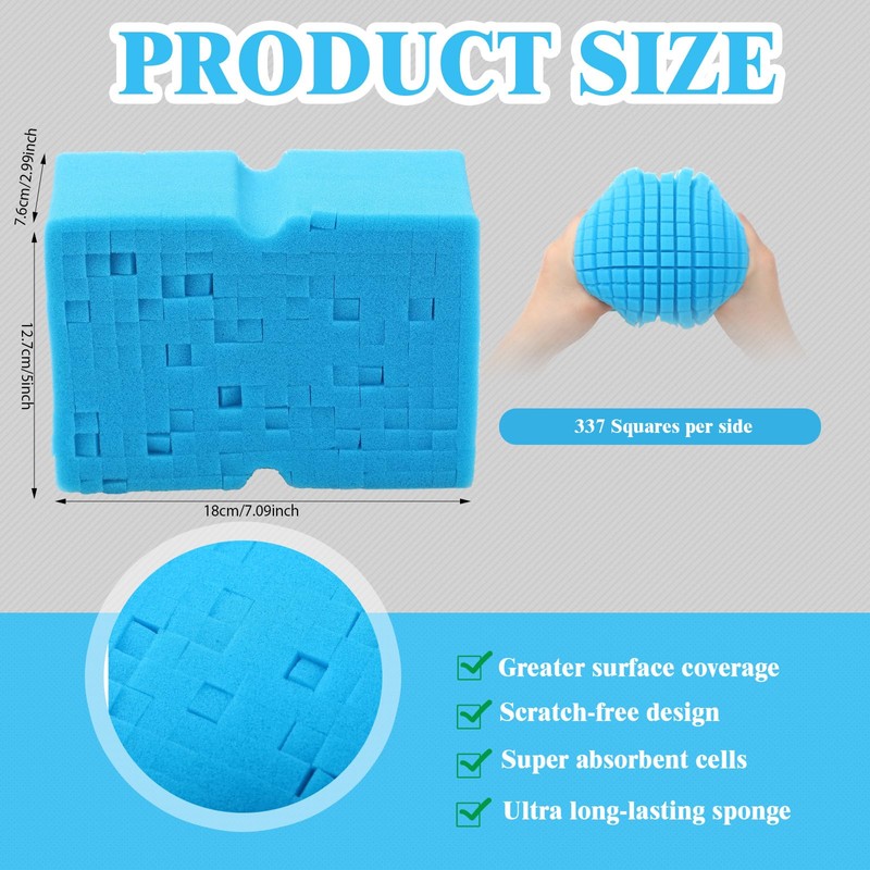 Swiffen Big Sponge 2.0 Soft Car Wash Sponge with Enhanced Grip Reaches Tight Spots Safe for All Paint Types Works with Rinseless Wash Car Soap(Blue)