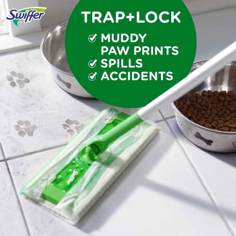 - TRAP + LOCK 50% more* dirt with Swiffer Sweeper Heavy Duty Pet Wet Cloths *vs. Swiffer Wet Cloths