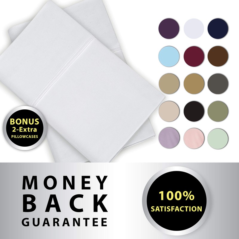 - CALIFORNIA KING SHEET SET INCLUDES: Flat Sheet (108" x 102"), Fitted Sheet (72" x 84" x 14" pocket) and Four Pillowcases (20" x 40") - Includes 2 Bonus Pillowcases; With All Around Elastic Fitted Sheet.