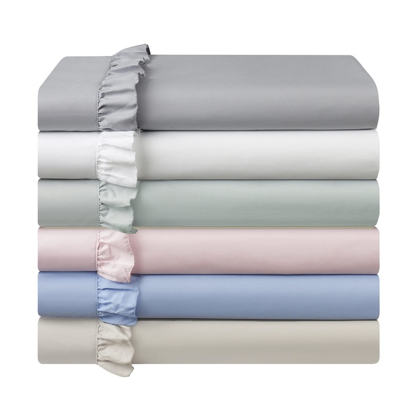 - SWIFT HOME DIFFERENCE: Give your bedroom a sophisticated touch with our Ruffled Hem Sheet Set. Beautifully crafted with a 2-inch ruffles on the top hem of the flat sheet and pillowcases, the sheet set gives your bed subtle elegance. Made from double-brushed microfiber, the set is soft to the touch while maintaining a crisp ironed look. The fitted sheet features deep pocket and is fully elasticized to ensure a snug fit on different mattresses.