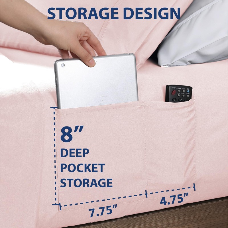 - SWIFT HOME DIFFERENCE: We live in an era full of small items we want to keep nearby while in bed. This is why we created Smart Sheets - constructed with two 8” deep storage compartments on both sides of the fitted sheet, it is perfect for keeping small items within reach at all times. The sheets are ultra-soft to the touch and the fitted sheet features deep pocket that is fully elasticized to ensure a snug fit on different types of mattresses.
