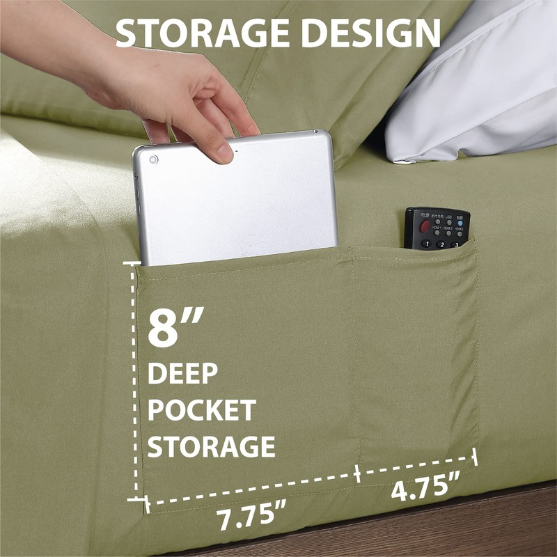 - SWIFT HOME DIFFERENCE: We live in an era full of small items we want to keep nearby while in bed. This is why we created Smart Sheets - constructed with two 8” deep storage compartments on both sides of the fitted sheet, it is perfect for keeping small items within reach at all times. The sheets are ultra-soft to the touch and the fitted sheet features deep pocket that is fully elasticized to ensure a snug fit on different types of mattresses.