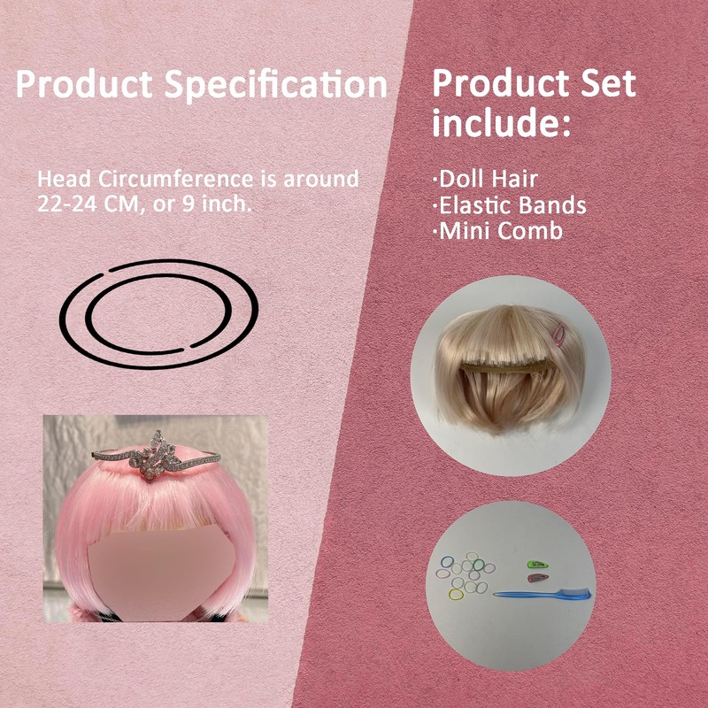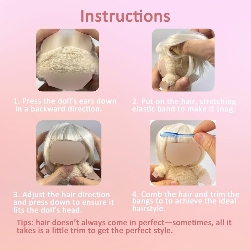 - Charming Accessory Set: This hair kit includes a stylish wig, elastic bands, and a mini comb—easy to use, clean, and style, making your doll look even more adorable