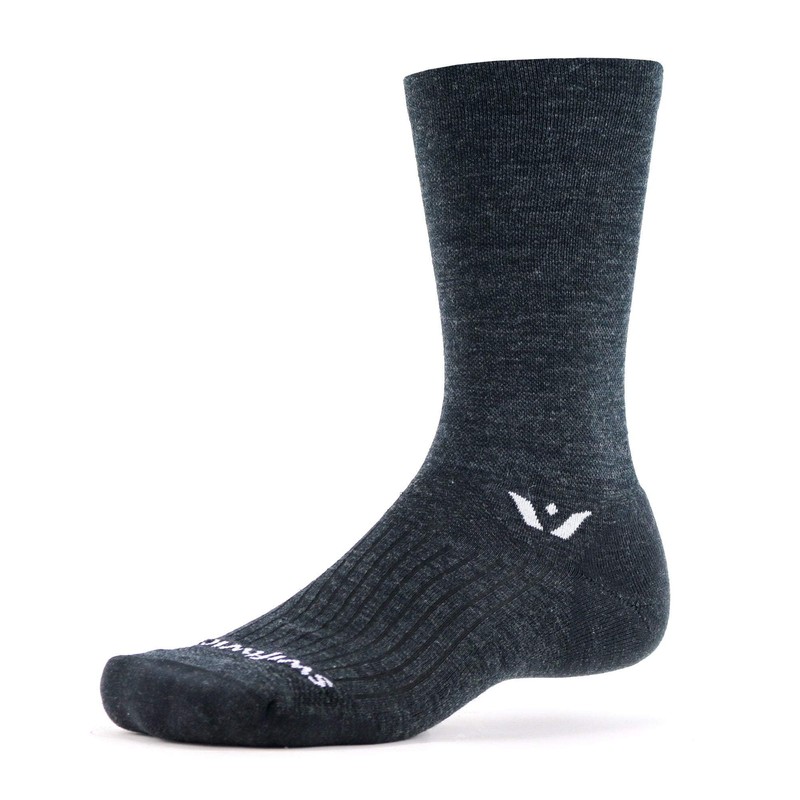 Swiftwick- PURSUIT SEVEN Hiking & Cycling Crew Socks, Durable, Merino Wool (Coal/Black, Small)