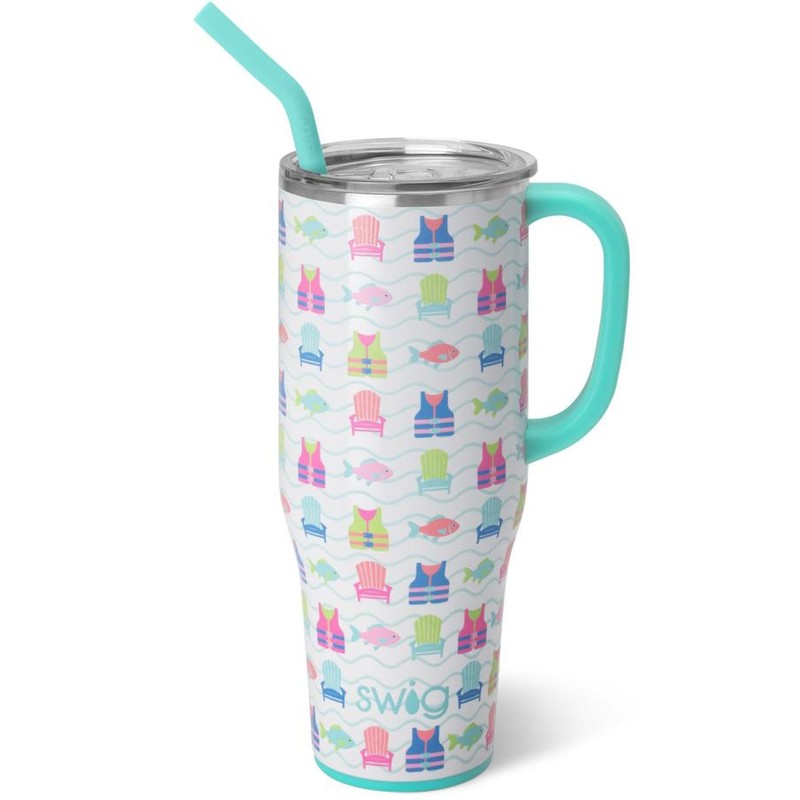 Swig Life 40oz Mega Mug, 40oz Tumbler with Handle and Straw, Extra Large Insulated Tumblers, Cup Holder Friendly Travel Mug (Lake Girl)