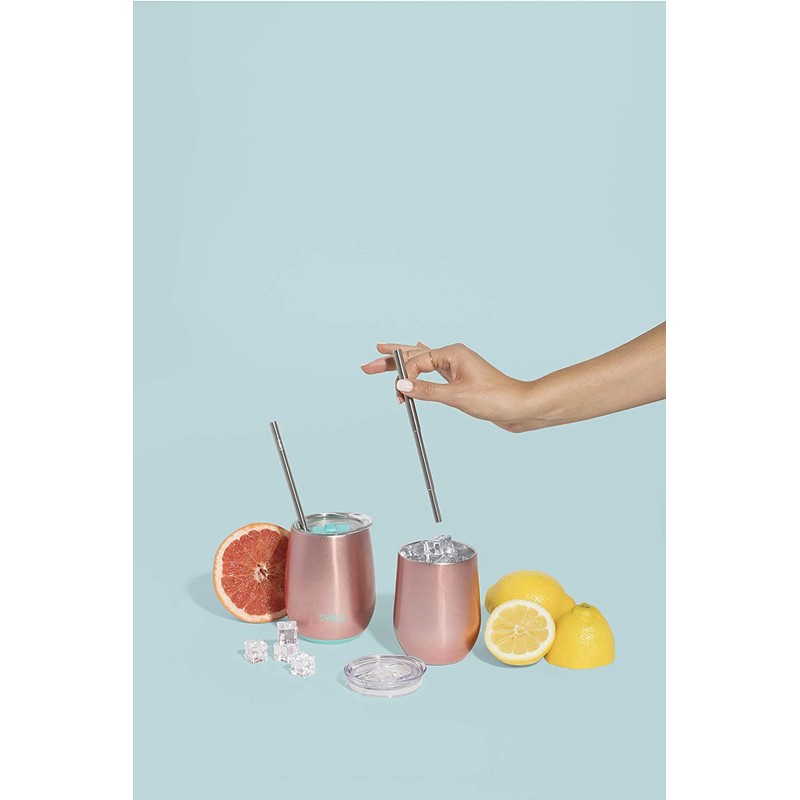 - STAINLESS STEEL STRAWS are BPA Free, and each measure 8.5" in length. The perfect fit for our Swig Tumblers, Wine Cups, Water Bottles, and Travel Mugs.