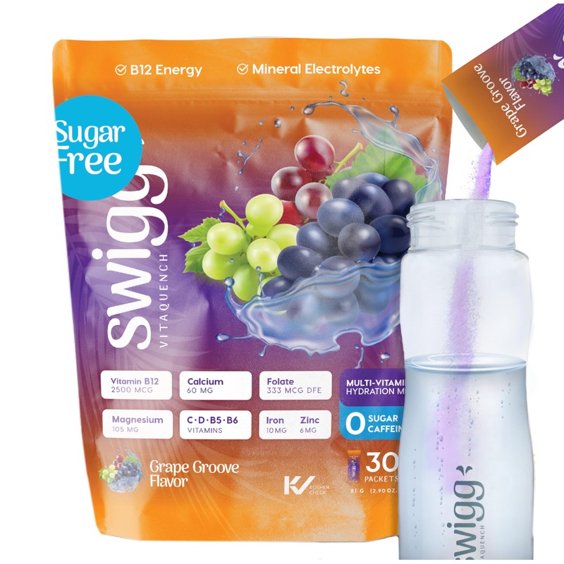 Swigg Electrolytes Powder No Sugar - 10+ Multi Vitamin Electrolytes Powder Packets Sugar Free, B12, B5, B6, C, D Folate, Iron, Magnesium, Calcium, Flavor