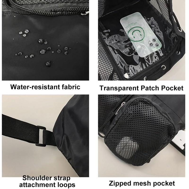 - 4.Wet Pocket Protection with Waterproof Zipper: The swim drawstring bag boasts a unique dry-wet separation pocket crafted from premium clear material, equipped with a waterproof zipper. This ensures your valuables like cellphones, sport watches, and wallets stay completely dry and protected from water exposure.