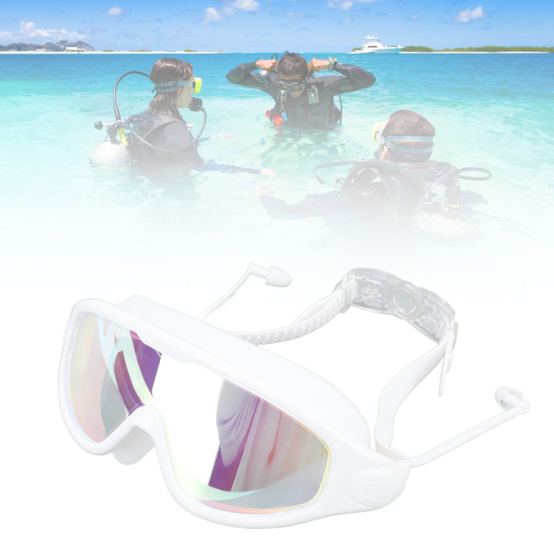 Swim Goggles Wide View Waterproof Anti Fog Swimming Goggles Dazzling Glasses Swim Glasses with Earplugs for Swimming Diving Water Sports White