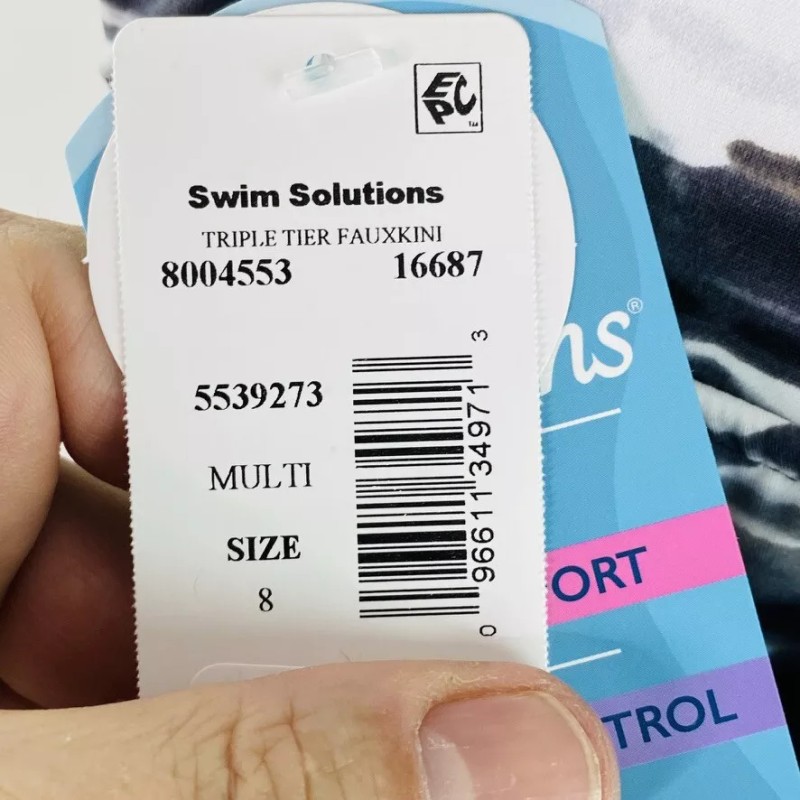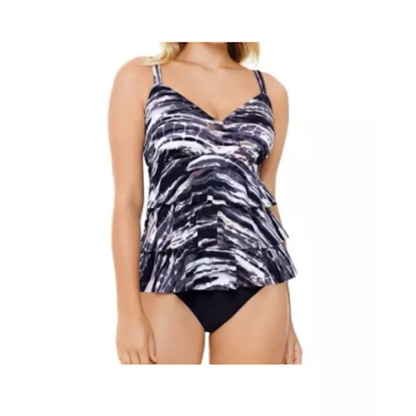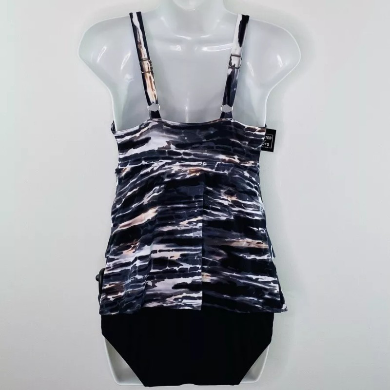 Swim Solutions $109 Coastal Plates Triple Tier One Piece Swimsuit Size 8