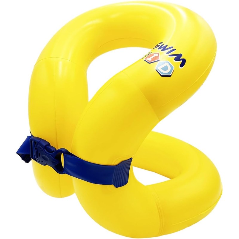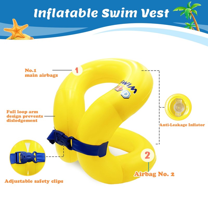 Swim Vest for Kids 33-88 lbs-Portable Inflatable Pool Floats Swimming Ring with Adjustable Safety Buckle-Swim Arm Bands with Double Surround Air Bag (Yellow, M(for Weight:50-88lbs/age 7-12yrs))